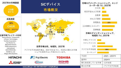SiCデバイス市場の主要なプレーヤーは、Semiconductor Components Industries, LLC、Infineon Technologies AG、Toshiba Corporation、Fuji Electric Co., Ltd.、Mitsubishi Electric Corporation、STMicroelectronics International N.V.、WOLFSPEED, INC.、ROHM Co., Ltd.、Allegro MicroSystems, Inc.、Hitachi, Ltd.などです。
